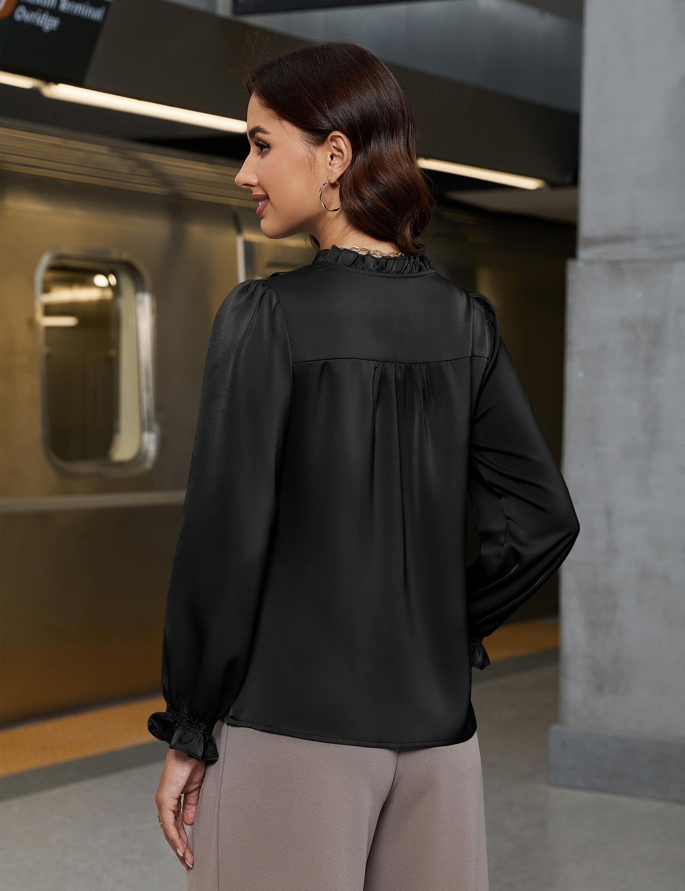 - Feature: The Business casual outfits for women features with ruffle trim and classic v neck to show your pretty neck curve, button closure, puff sleeve, You can choose to wear it as a cardigan or button it up, curved hem can also be knotted for casual look.