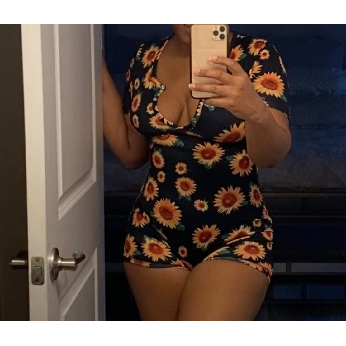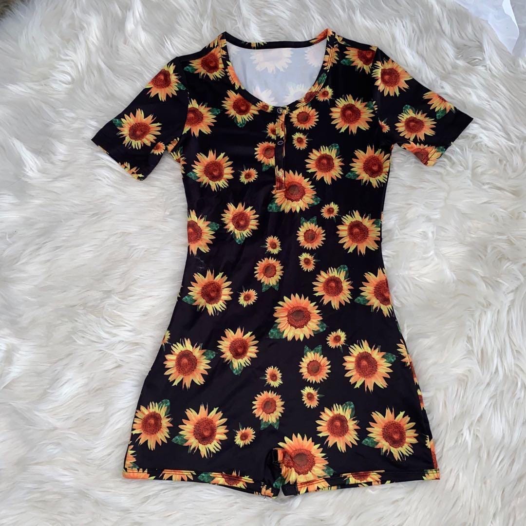 Stay cute and comfy in our floral sunflower print romper! Lightweight, flattering, and perfect for relaxing at home, hotel stays, or weekend getaways! 🌻